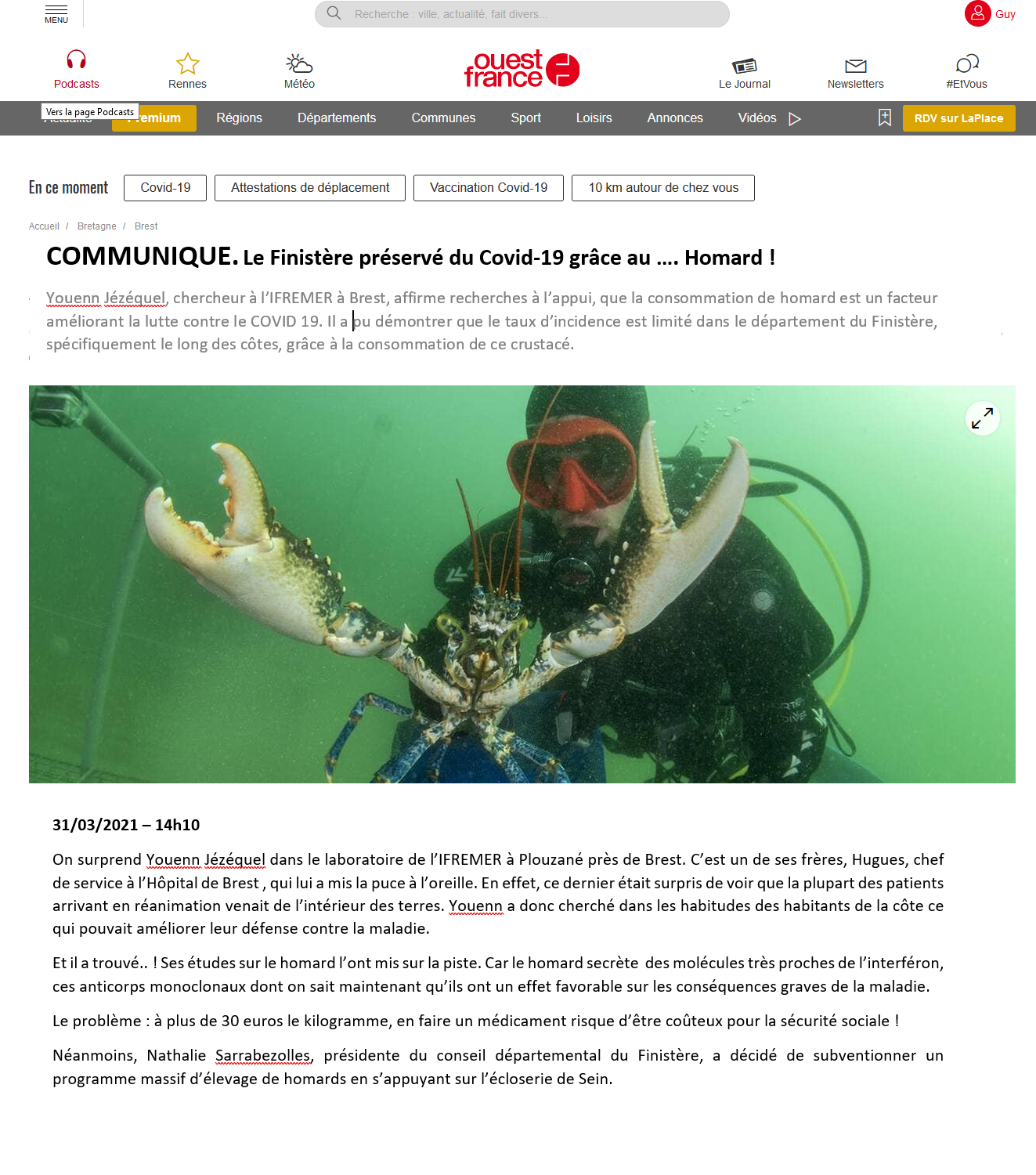 Reçu aujourd'hui un mail de la rédaction Brest de Ouest-France.