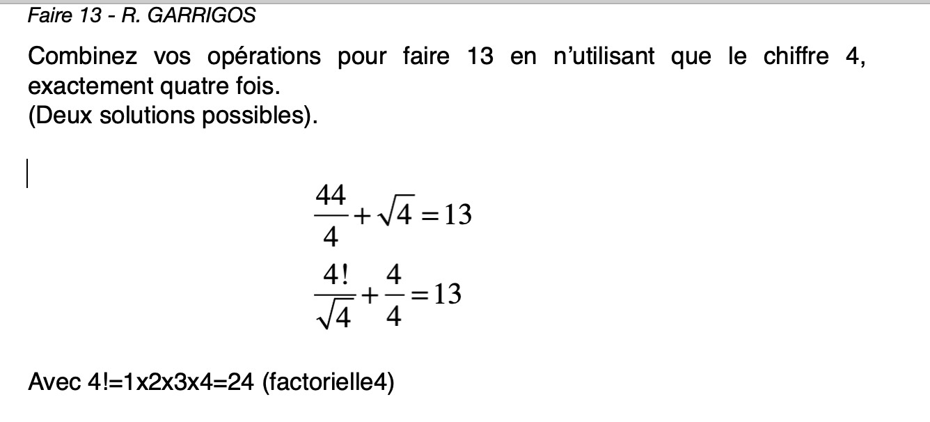 Faire 13 avec 4